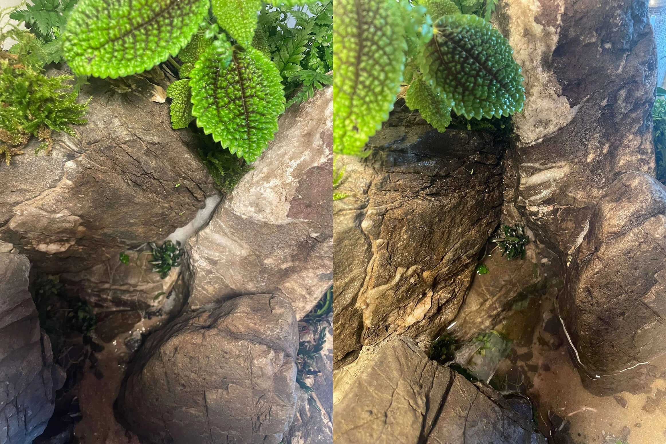 Jeg havde en masse sten rester og støv til overs, jeg knuste nogle af dem og brugte til at skjule de sidste steder med filtervat tilbage. Det kan ses herunder, hvordan småsten og støvblandingen endte med at blive helt naturligt.